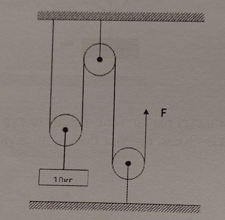 Два блока неподвижных, один подвижный. Значит сила уменьшается в 2 раза