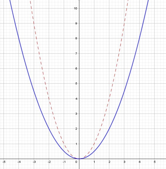 Графиком квадратичной функции является парабола, ветви которого направлены вверх. График y = 0.5x² можно получить из деформации графика функции y = x². т.е. строится график функции y = x² и затем сделать сжатие в 2 раза к оси Ох.