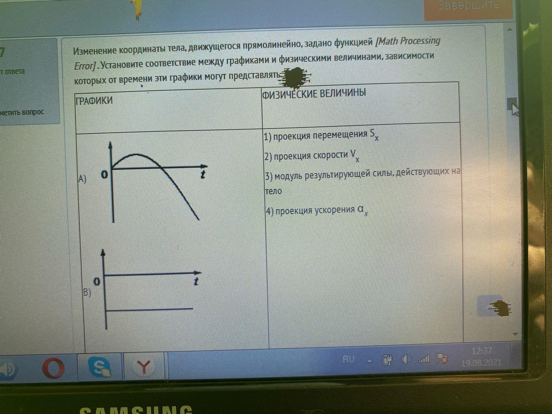 Изменение координаты тела, движущегося прямолинейно задано функцией. Установите соответствие между графиками и физическими величинами, зависимости которых от времени эти графики могут представлять