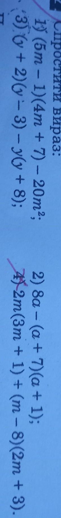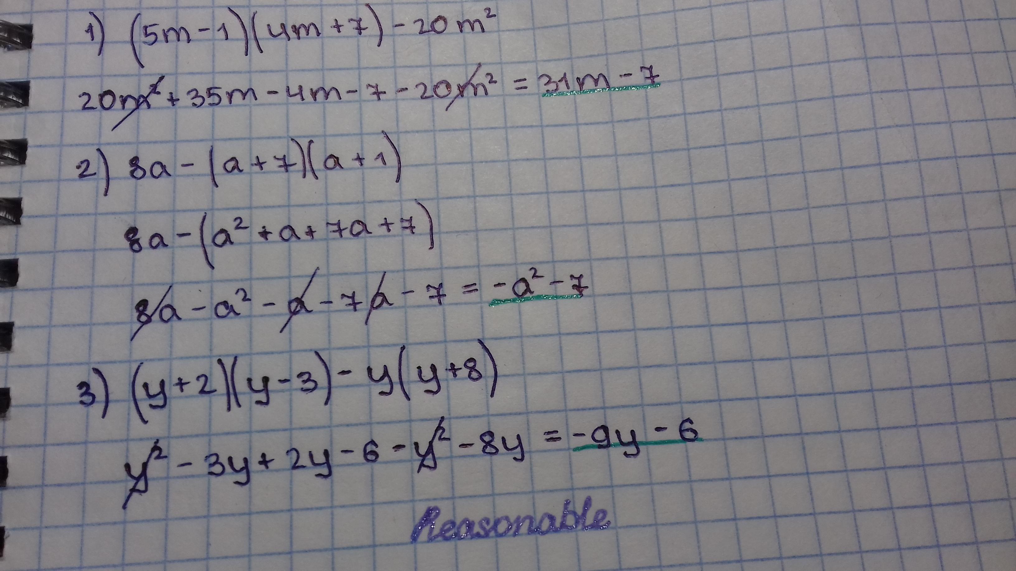 1) (5m-1)(4m+7)-20m² = 20m²+35m-4m-7-20m² = 31m-7