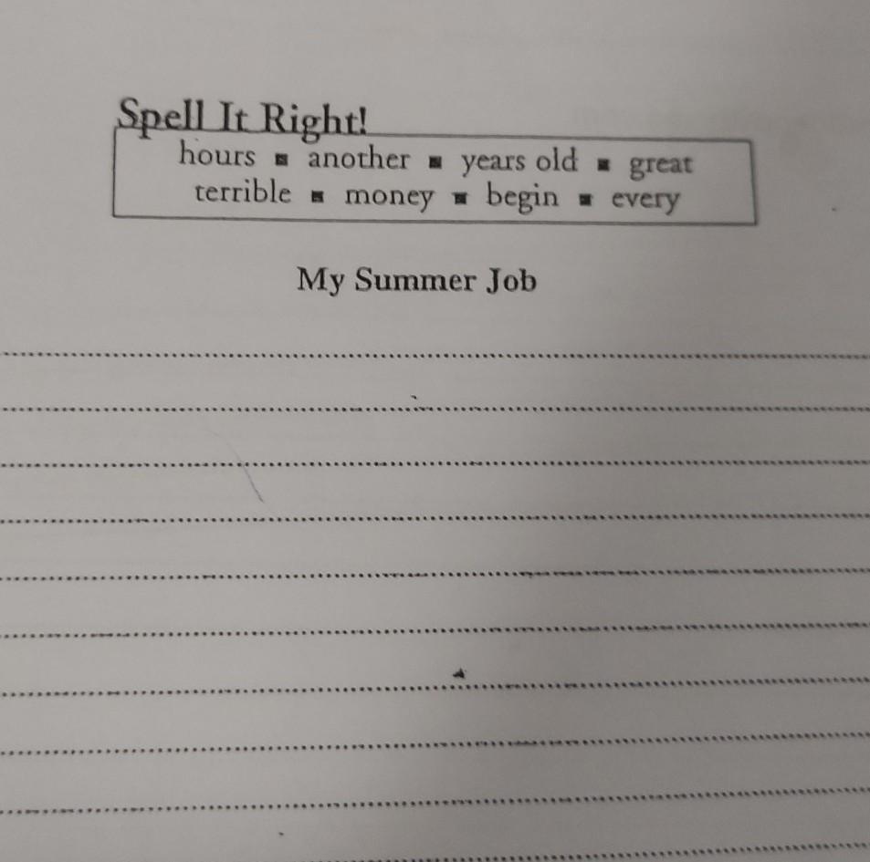 представьте, что у вас новая летняя работа. Опишите работу. Он может быть реальным или воображаемым. Напишите 35-50 слов. (Эти слова должны присутствовать в тексте) даю 18 балов