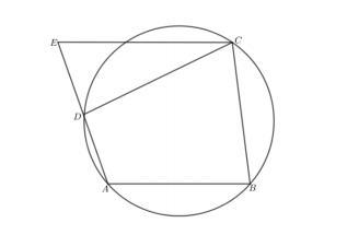 Точка E находится на продолжении стороны