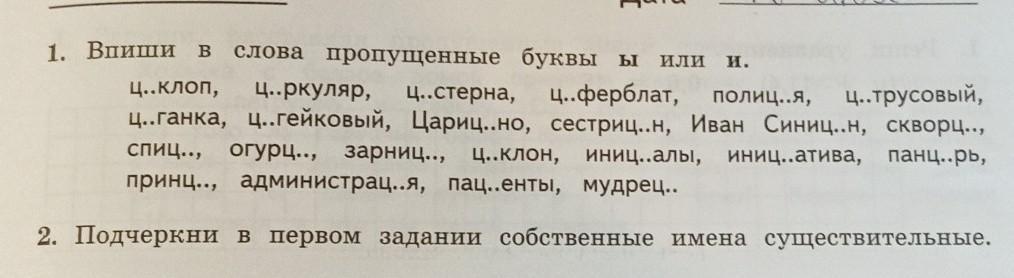 Впиши в слова пропущенные буквы Ы или И. Подчеркни собственные имена сущ-ные.