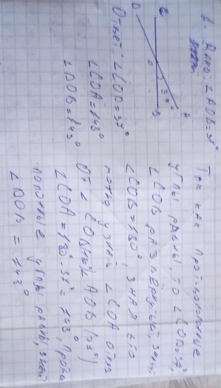 1. Один из углов, образованных при пересечении двух прямых, равен 37°.