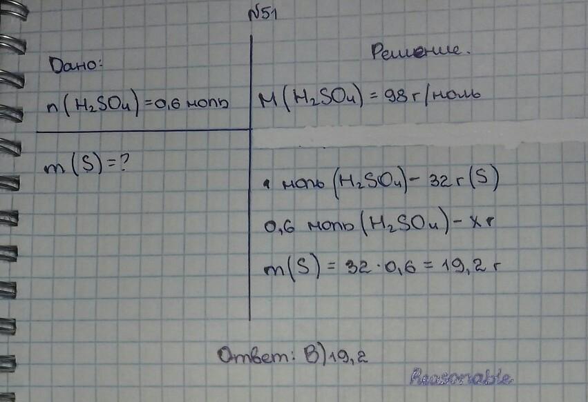 m(S) = n(S)*M(S) = 0,6 моль*32 г/моль = 19,2 г