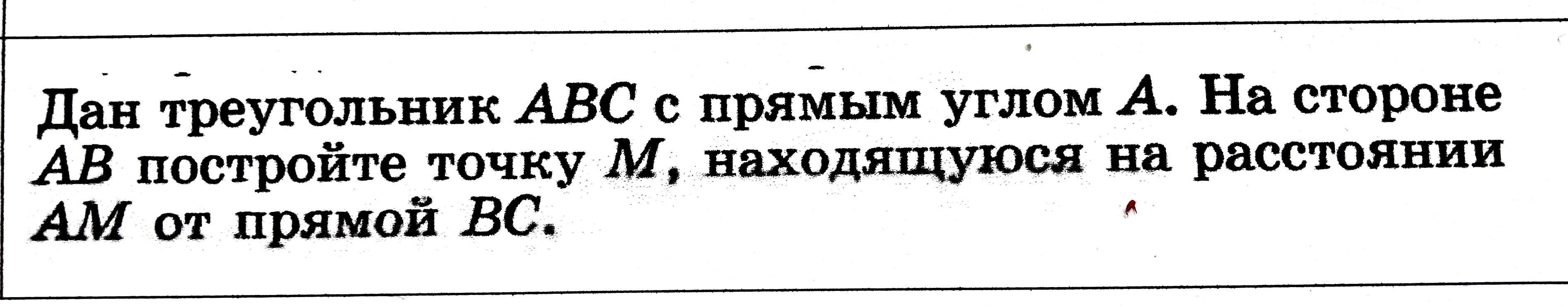 Ответы написаны, но они не верные. Нужно построить биссектрису угла С. Биссектриса угла-геометрическое место точек (ГМТ) равноудалённых от сторон данного угла. Из чего последует равенство АМ=МЕ, где МЕ перпендикуляр к стороне ВС.