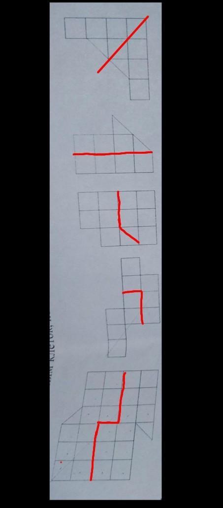 Разделите фигуры, изображенные на рисунке, на две равные части. Разрезать можно не только по линиям клеток, но и по их диагоналям Даю 100 баллов!