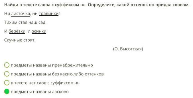 Примеры других ласковых предметов с суфиксом к: рябинка, ёлочка, яблонька.