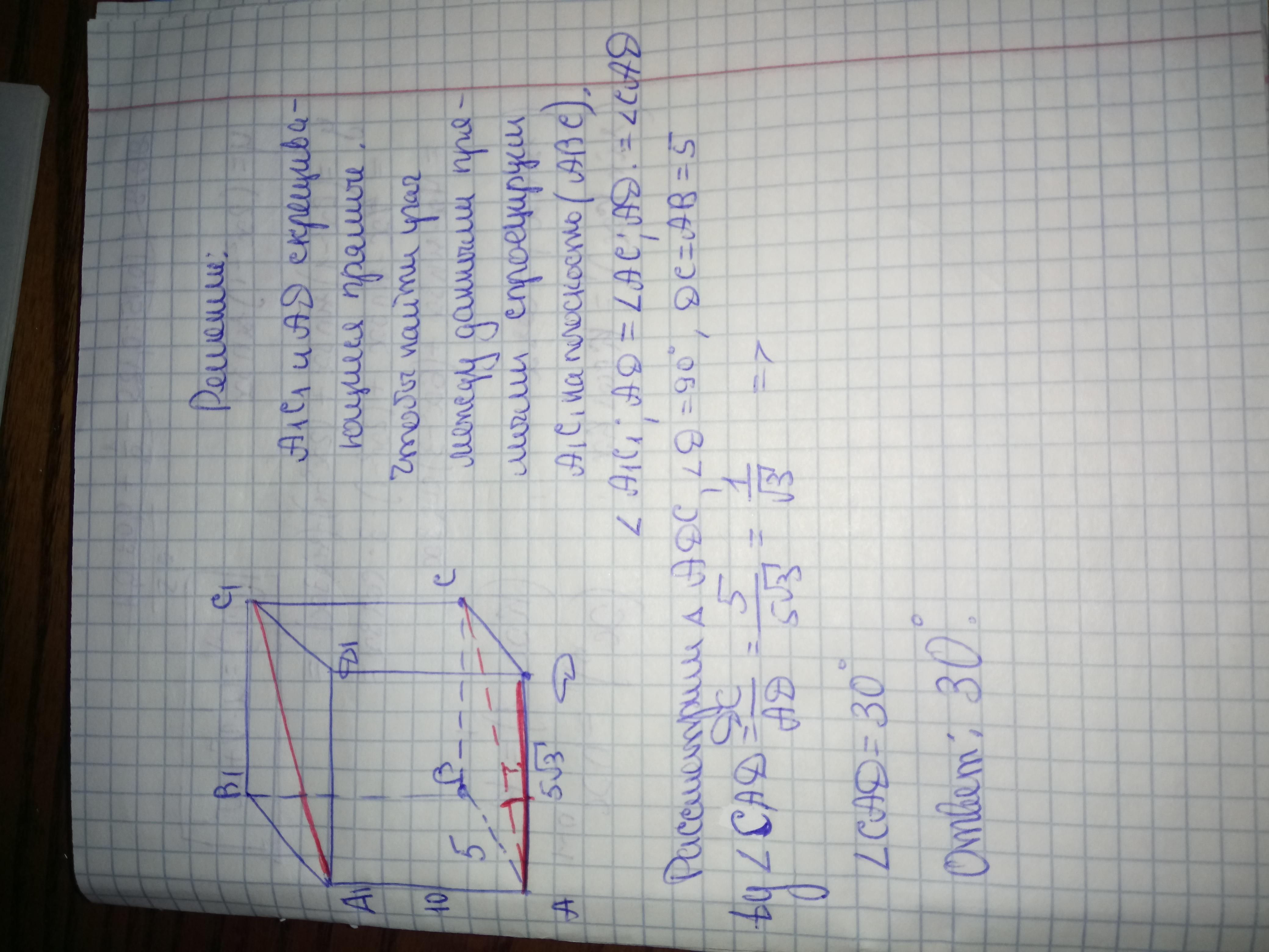 АВ=5, АD=5√3, АА1=10. Найдите угол между прямыми