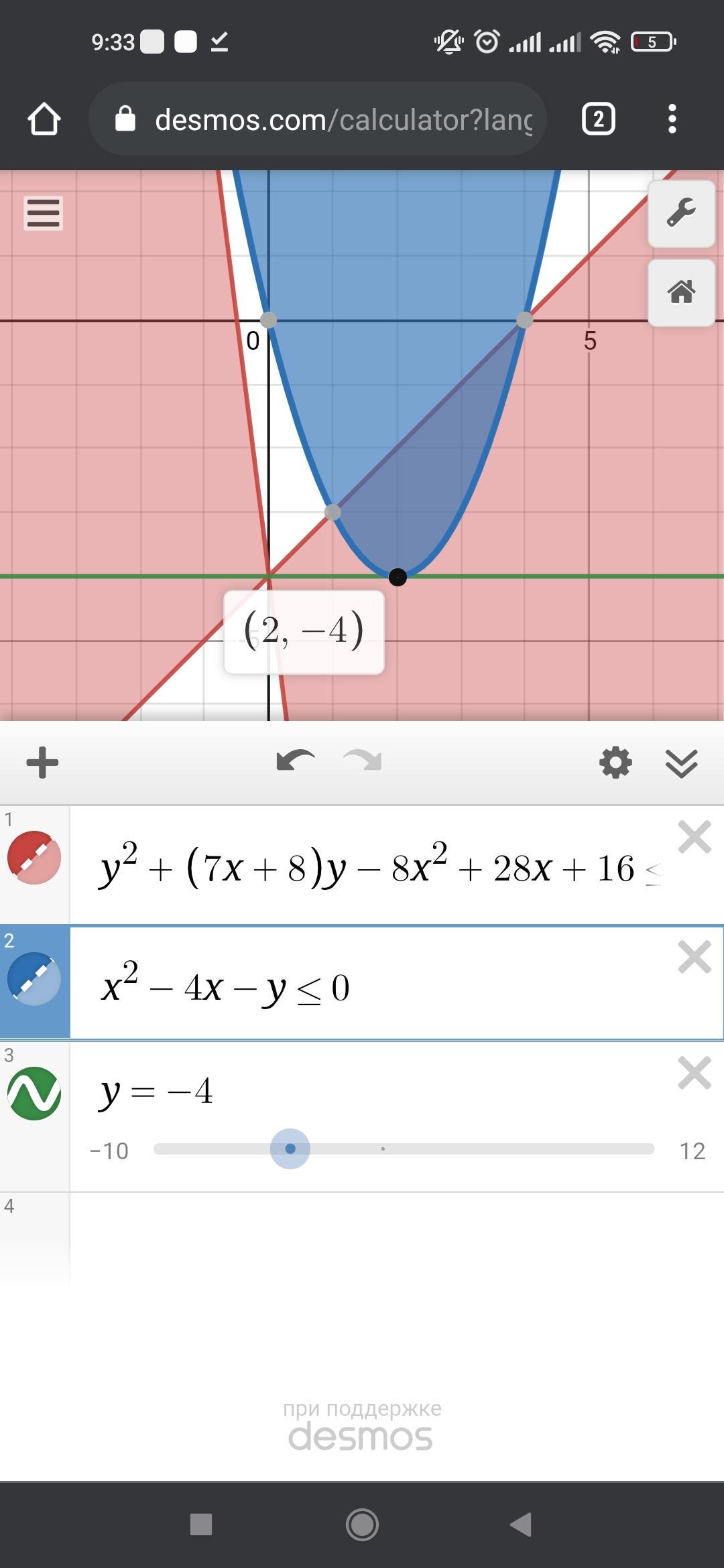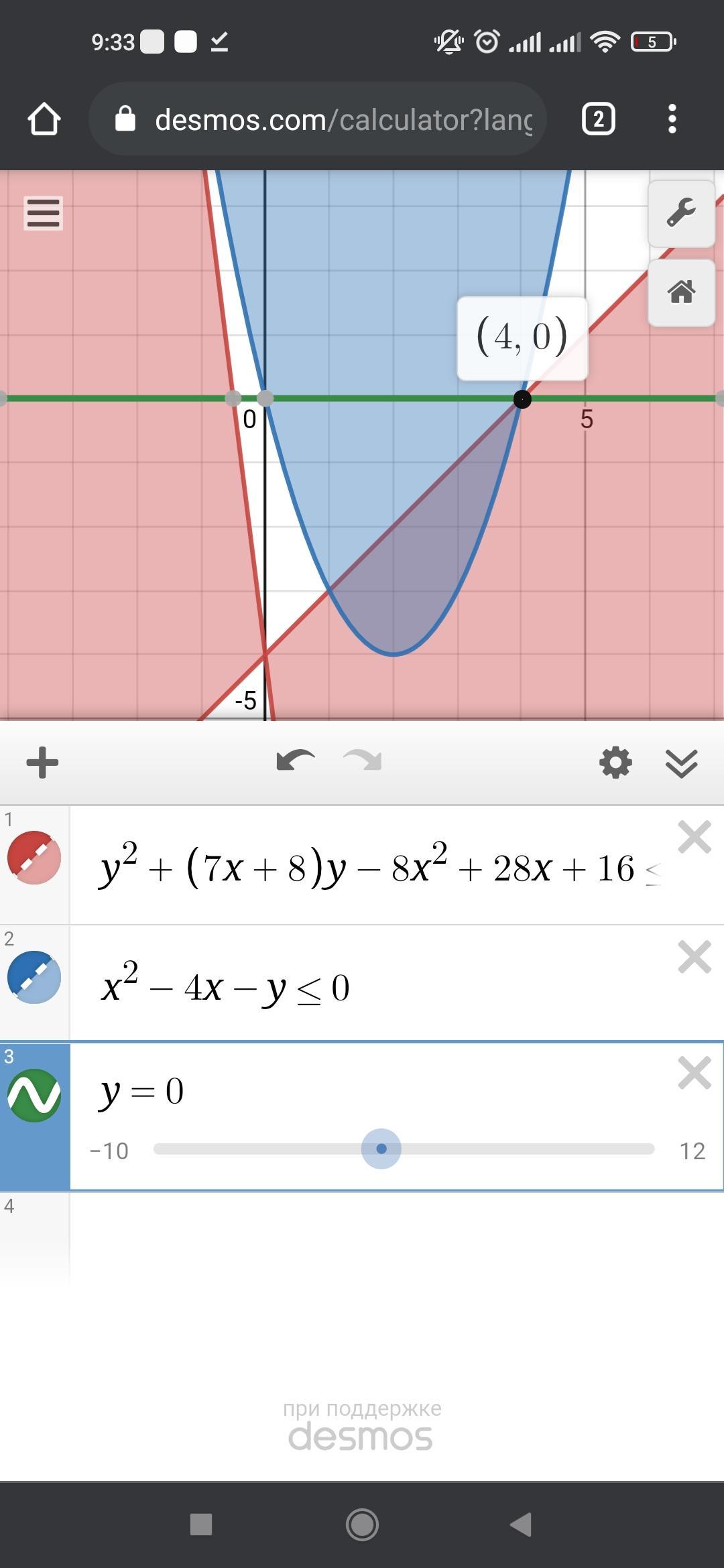 Рассмотрим координатную плоскость хОа (для нахождения единственного решения будем использовать прямую а, параллельную оси Х). Смотря на графики и систему неравенств, нам нужно пересечение того, что внутри параболы и внутри "углов"