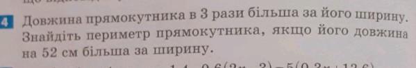 Если длина прямоугольника в 3 раза больше ее ширины и одновременно на 52 см. больше этой же ширины, то две ширины прямоугольника равны 52 см.