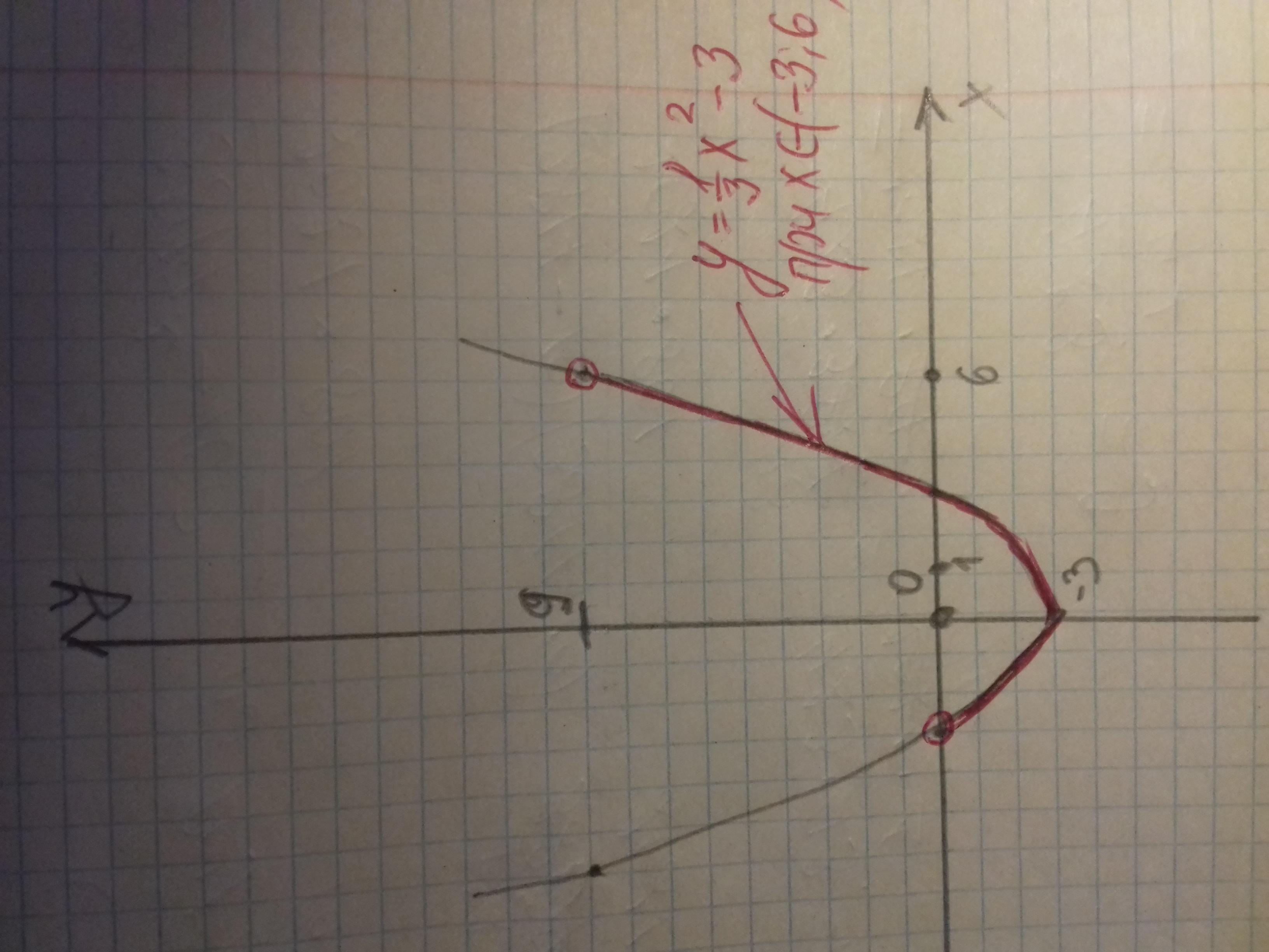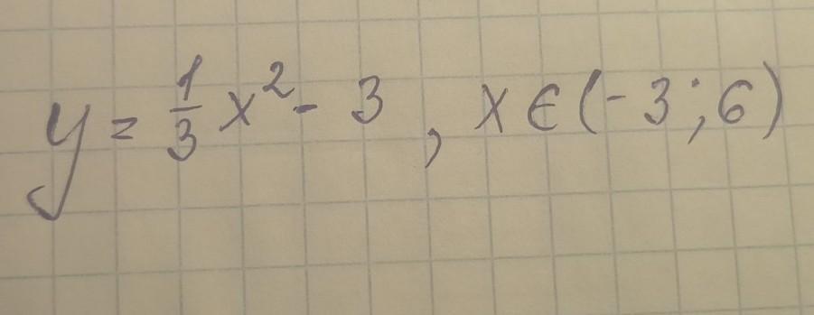 Посмотри внимательно на рисунок. Красным выделен график функции при х (-3; 6). Любая точка на красном графике будет иметь координату по У от -3 до 9. Это и будет ответом (-3; 9)