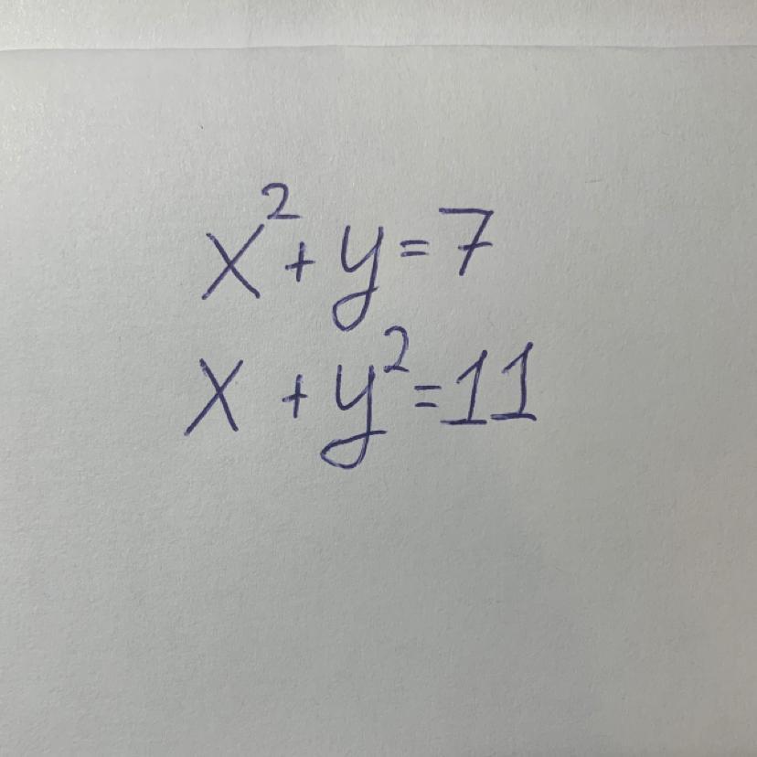 Решить систему уравнений х²+у=7 и х+у²=11 в целых числах.
