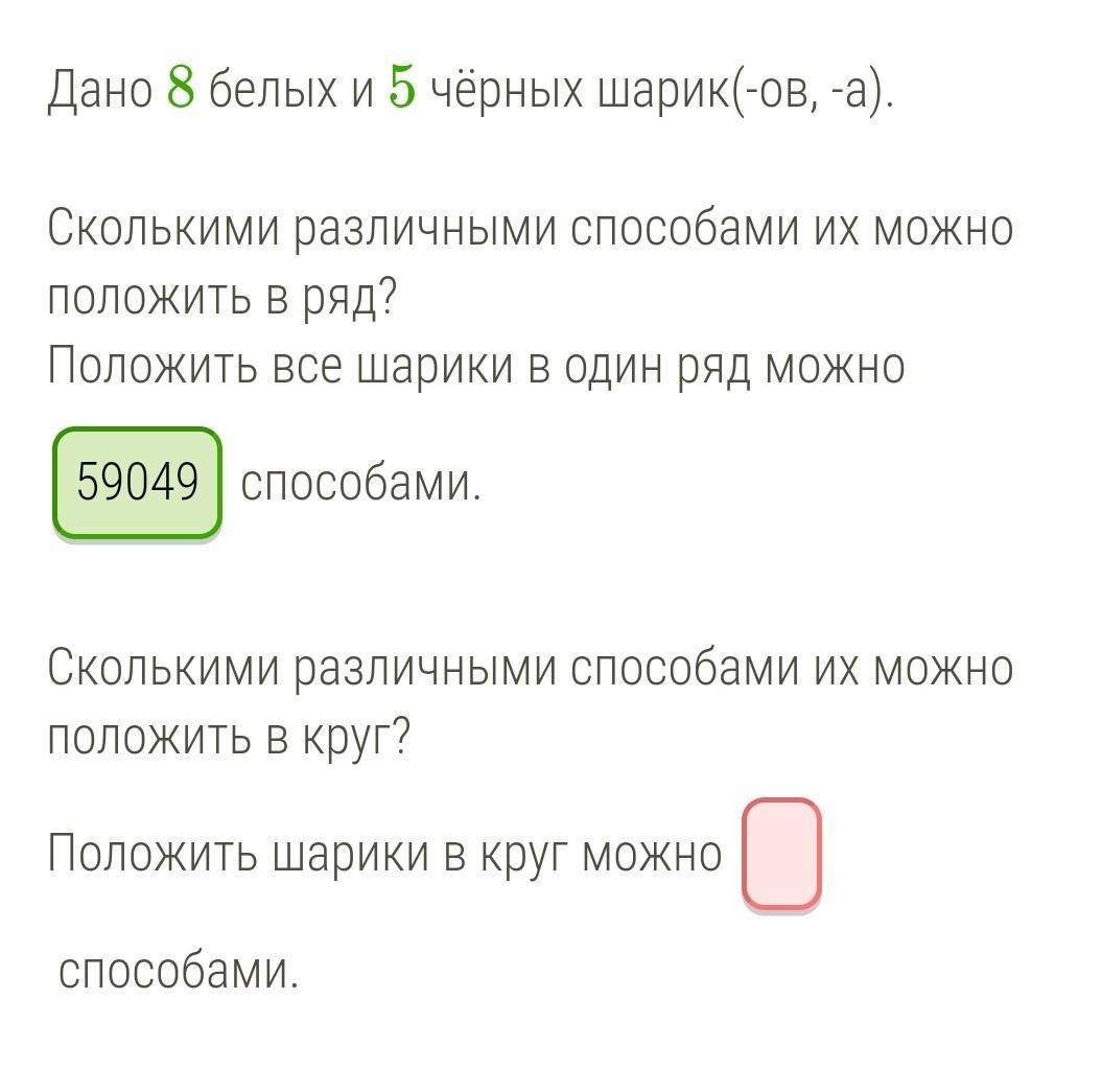 есть 13 шариков. количество перестановок Р=13!=6227020800