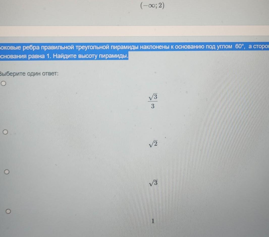 наклонены к основанию под 60°, а сторона основание равна 1. найдите высоту пирамиды