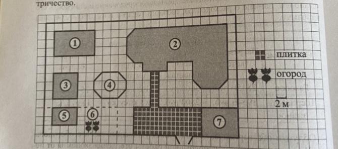 Найдите площадь которую занимает жилой дом( он под цифрой 1) Ответ дайте в квадратных метрах. Пожалуйста!!!