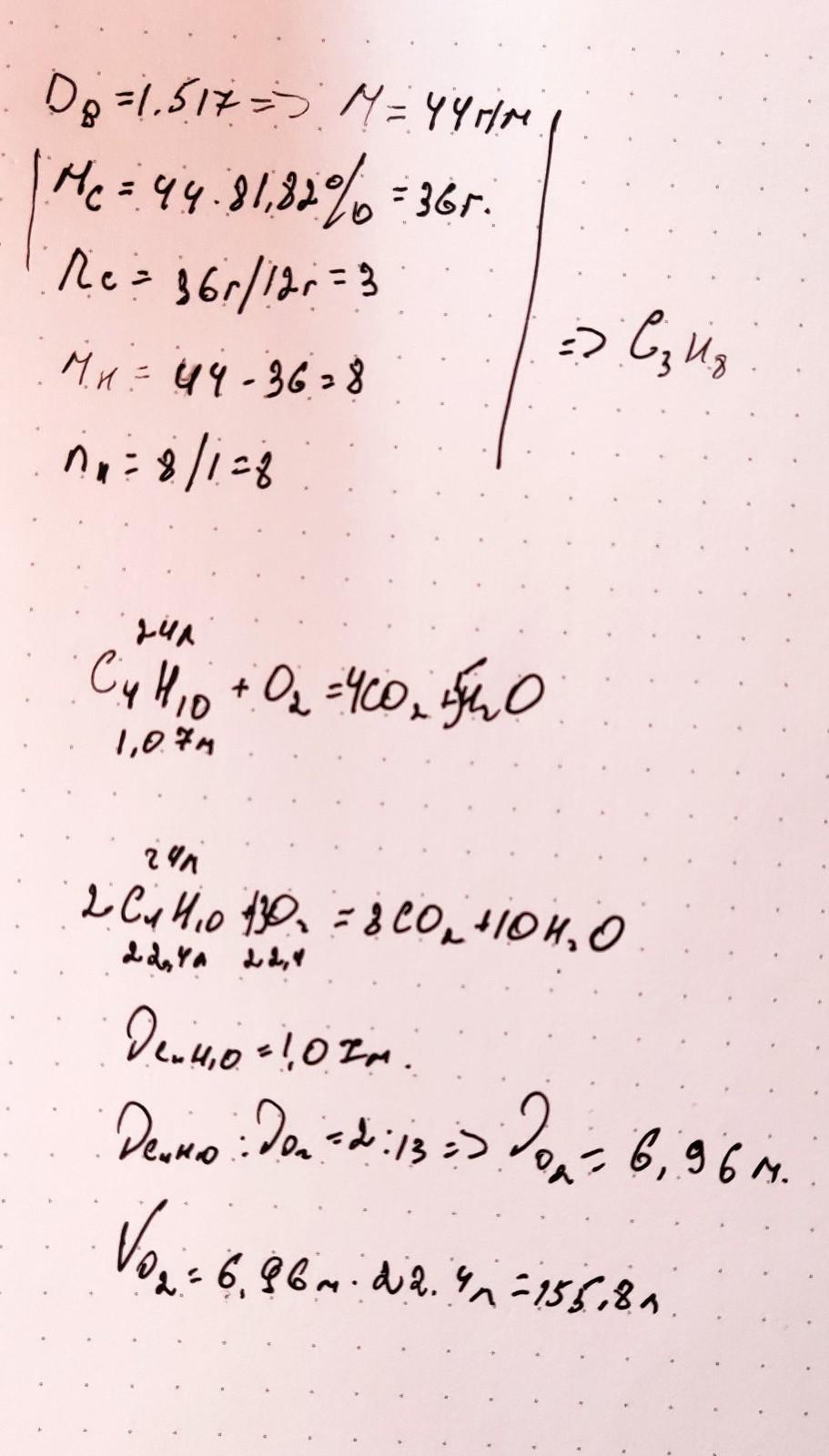 2) Какой объём кислорода (в л, н.у.) требуется для полного сгорания бутана объёмом 24 л (н.у.).