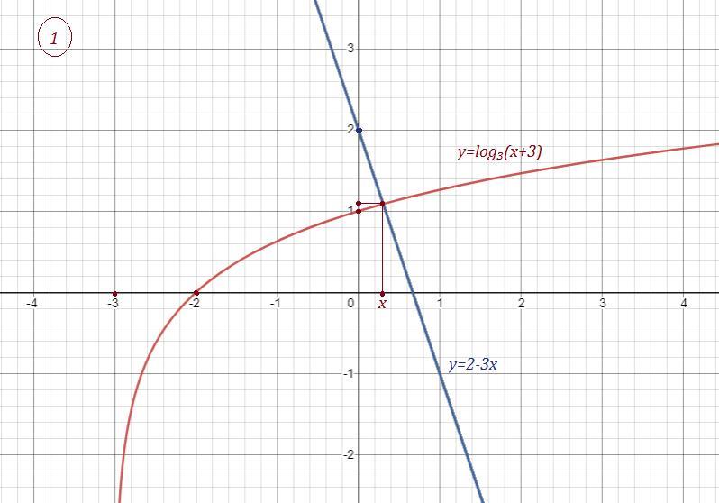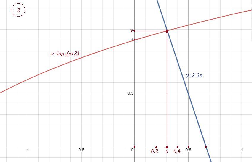 Точка пересечения графиков имеет абсциссу приближённо равную 0,3