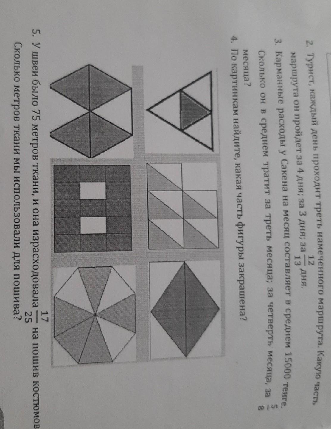 4. 1/4; 5/12; 4/8(1/2); 4/6(2/3); 13/15; 5/8