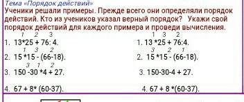 сначала выполняются действия в скобках, затем так же по порядку слева направо умножение и деление, затем — сложение и вычитание.