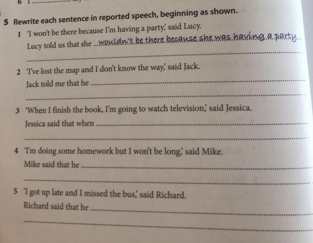 4. Mike said that he was doing some homework but he wouldn't be long.