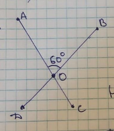 В данном случае углы AOB и DOC вертикальные,значит DOC=60