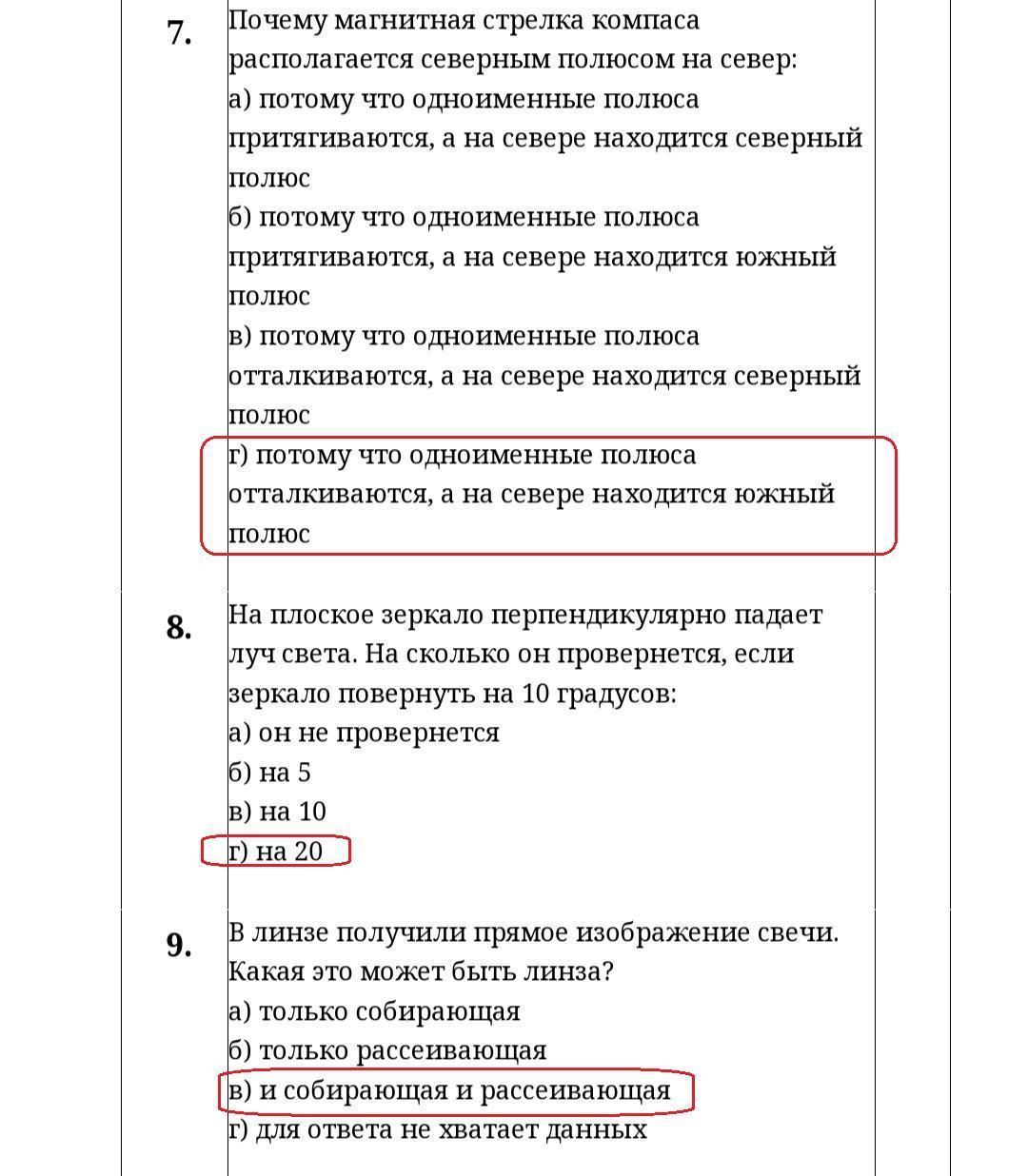 Ответы (обведены рамкой):
