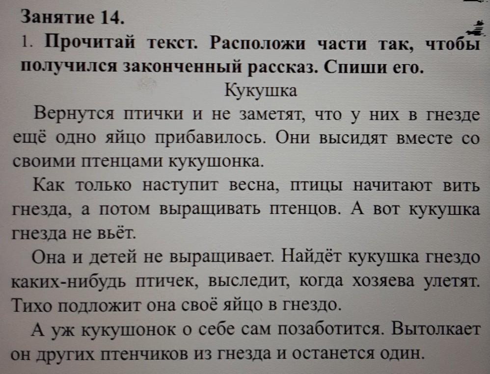 Как только наступит весна, птицы начинают вить гнёзда. Потом они выращивать птенцов. Только кукушка не вьёт гнезда.