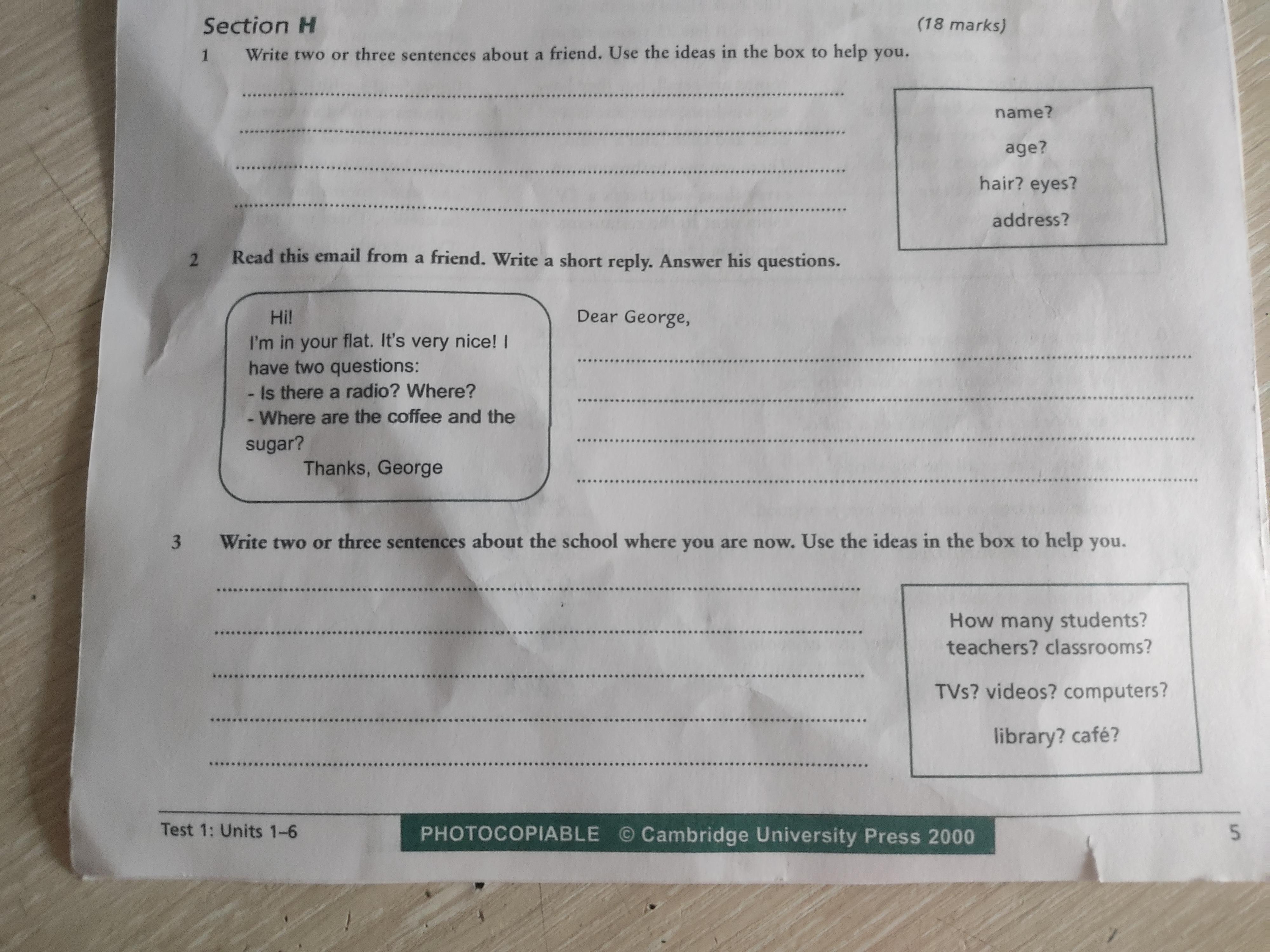 1.My friend name is Sonya. She is 12 years old. She has green eyes and fair hair. She live in Moscow.