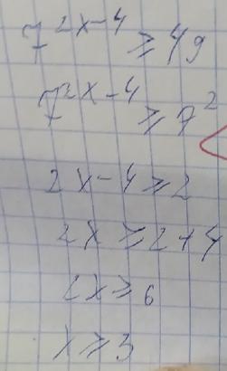 Решите неравенство 7^2x-4≥49. Решение есть, ответ x≥3. Не хватает какой-то линии (типо графика) Помогите пожалуйста!