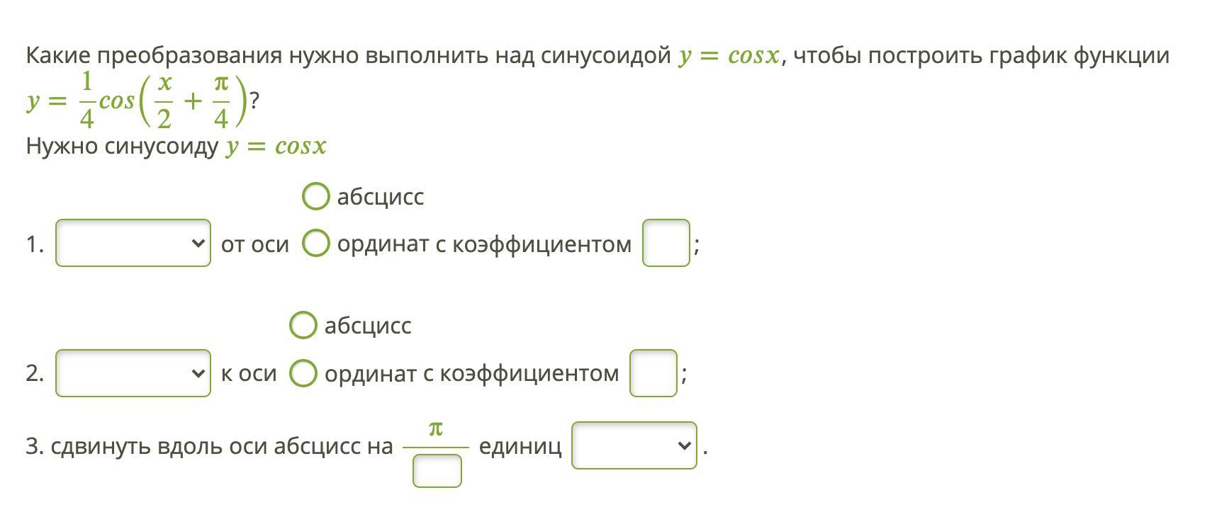 Какие преобразования нужно выполнить над синусоидой y=cosx, чтобы построить график функции