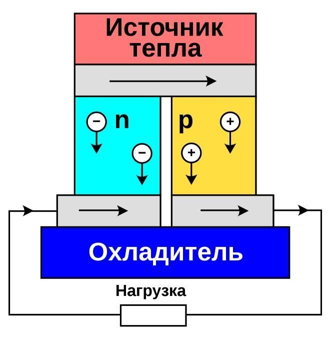 Нагрузка подключается любым подходящим по параметрам кабелем. "Серыми плитами" на рисунке схематично изображен "горячий" и "холодный" спай.