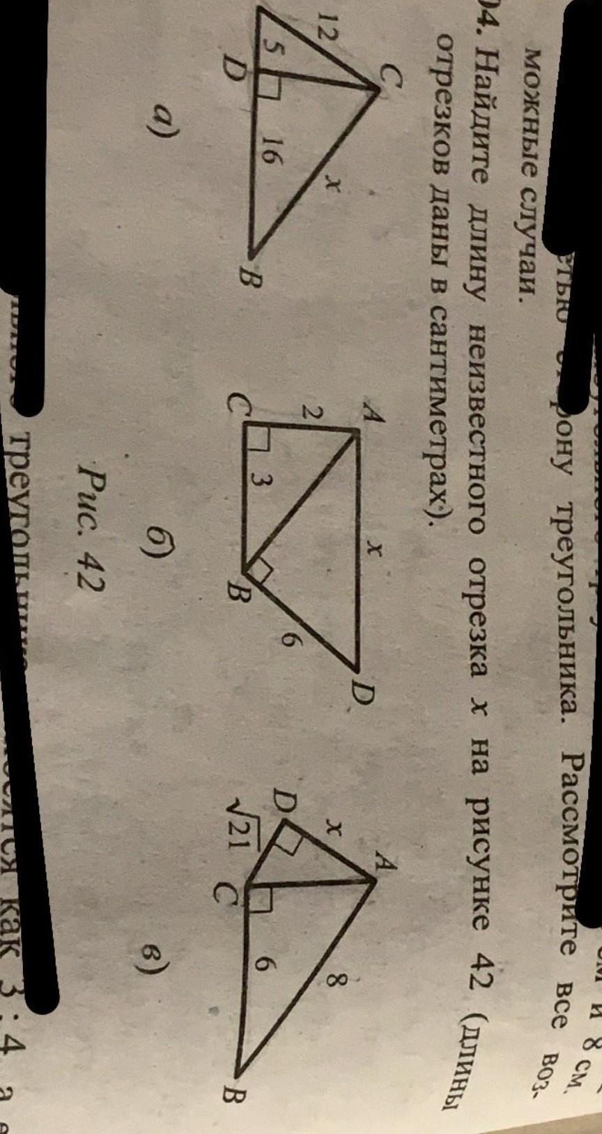 x²=AD²=AC²-DC²=28-21=7 , x=√7 см