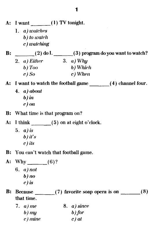 Too do I - я тоже. Фразу я тоже так не говорят. Too do I так не говорят понимаете? как в третьем можно поставить вариант с). Когда программу вы хотите посмотреть и человек отвечает: я хочу посмотреть футбольный матч. Может тогда лучше поставить which чтобы звучало: какую программу вы хотите посмотреть