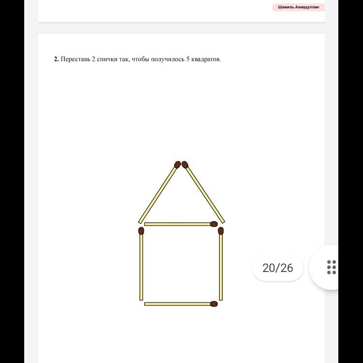 Надо взять 2 верхнии спички и поставить их как + в получившийся квадрат. Тогда получится 4 маленьких и 1 большой, а в сумме 5 квадратов