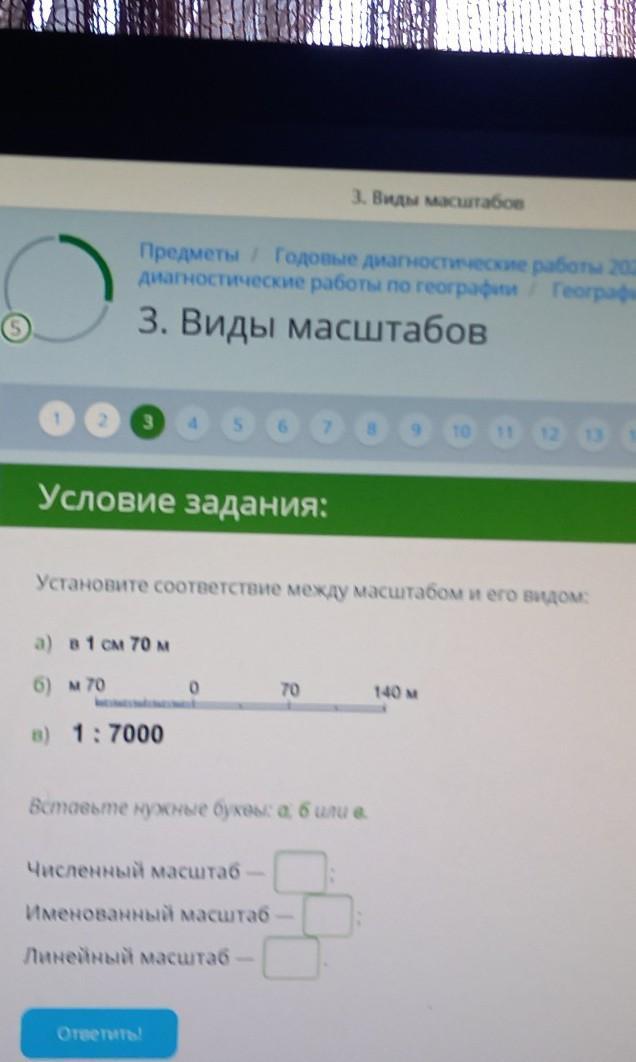 B) 1:7000 Вставьте нужные буквы: а, били в Численный масштаб – Именованный масштаб Линейный масштаб — Ответить!