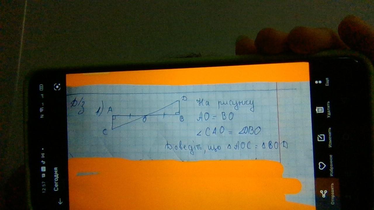 2) треугольник АОС = треугольнику ВОD по стороне и двум прилежащим к ней углам ( АО=ОВ и угол САО= углу DВО по условию; АОС = ВОD по доказанному )