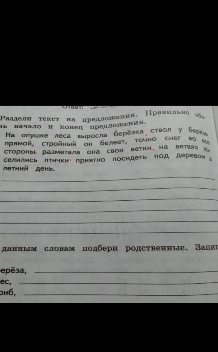 2. Раздели текст на предложения. Правильно обозначь начало и конец предложения.