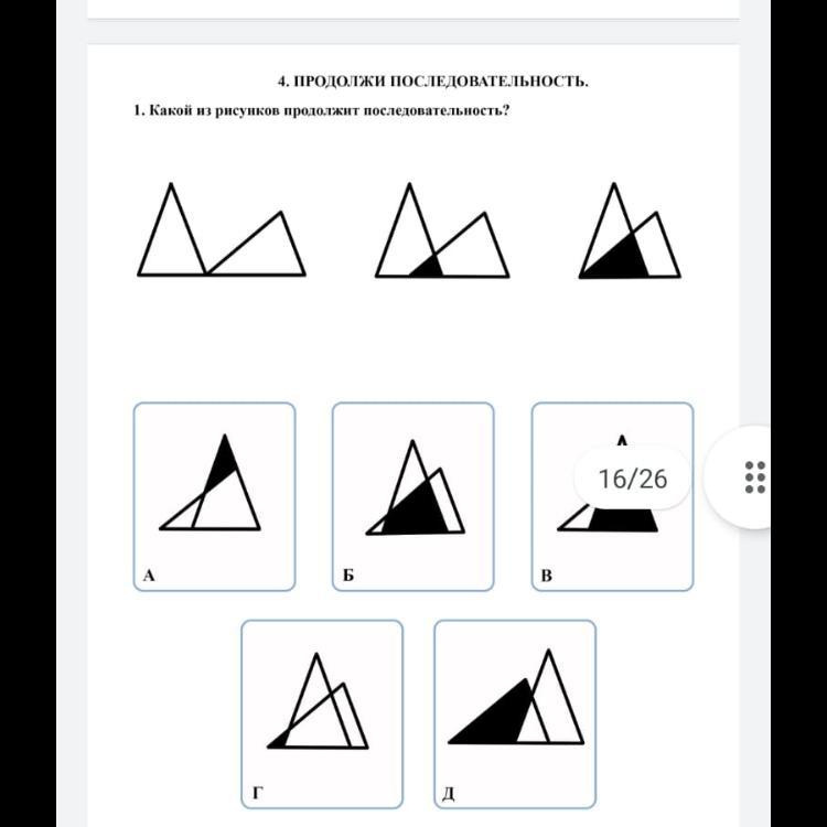 Ещё обрати внимание, то что правый треугольник на примерно 1/3 площади двигается налево и в ответе Б, правый треугольник вышел чуток, а в ответе В, как раз сдвиг на примерно 1/3 площади. Походу всё таки первый комментатор был прав) Извини за запутанность