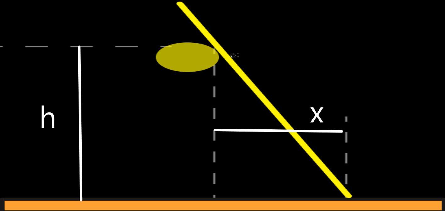 Шест длиной L=169 см поставили так, что он опирается на гладкую горизонтальную балку ограждения, проходящую на высоте h=120 см над шероховатым горизонтальным полом. Точка опоры шеста о пол по горизонтали смещена от ограждения на расстояние x=50 см (см. рисунок). Масса шеста равна m=5,2 кг. Найдите величину силы, с которой шест действует на пол. Ответ выразите в ньютонах, округлив до десятых. Ускорение свободного падения считайте равным 10 м/с2.