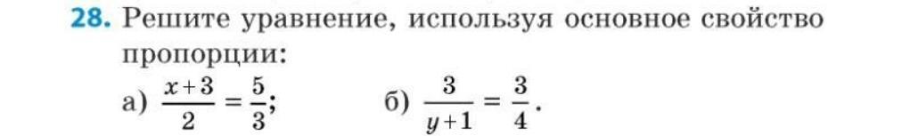 а) (х+3)/2 = 5/3 б) 3/(у+1) = 3/4