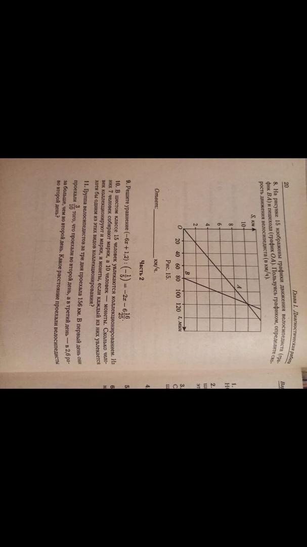 на рисунке 15 изображены графики движения велосипедиста (графики b a) и пешехода (график o a) пользуясь графиком определите скорость движения велосипедиста (в км/ч)