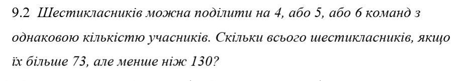 За умовою 73 < n < 130 , тоді n = 4 * 5 * 6 = 120 ( учнів ) .