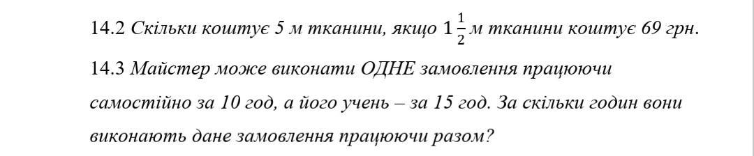 1) 69 : 1. 1/2 = 69 : 3/2 = 69 : 1,5 = 46 (грн) - стоит 1 м ткани