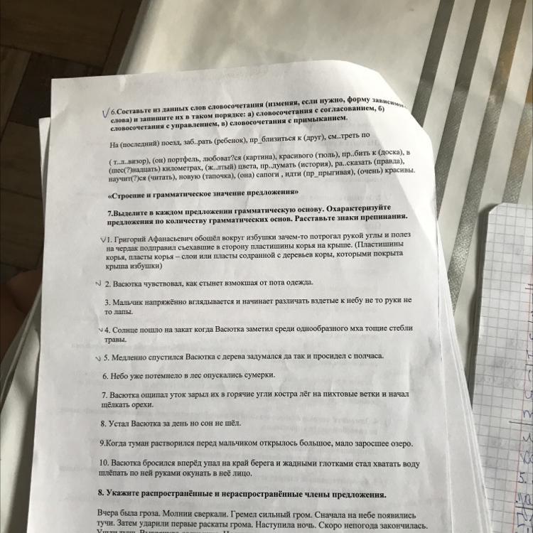 7.Выделите в каждом предложении грамматическую основу. Охарактеризуйте