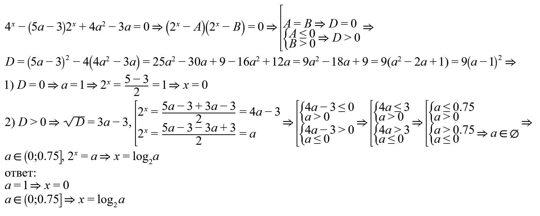 При каких значениях параметра а уравнение 4^х-(5а-3)×2^х+4а^2-3а=0 имеет единственное решение?