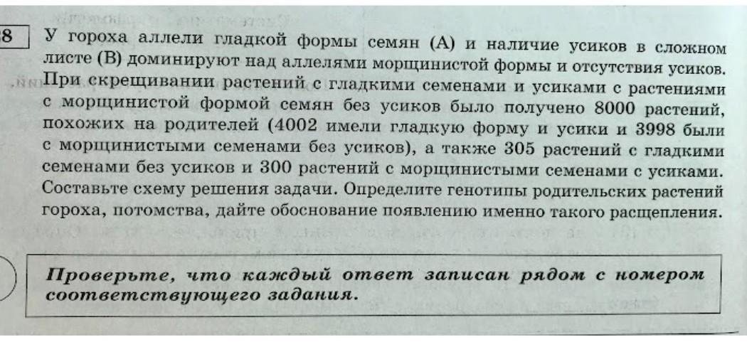 В данной задачи происходит образование 4 типов гамет, два типа (Ав, аВ) с кроссинговером, а вторые два типа гамет без кроссинговера (АВ, ав)