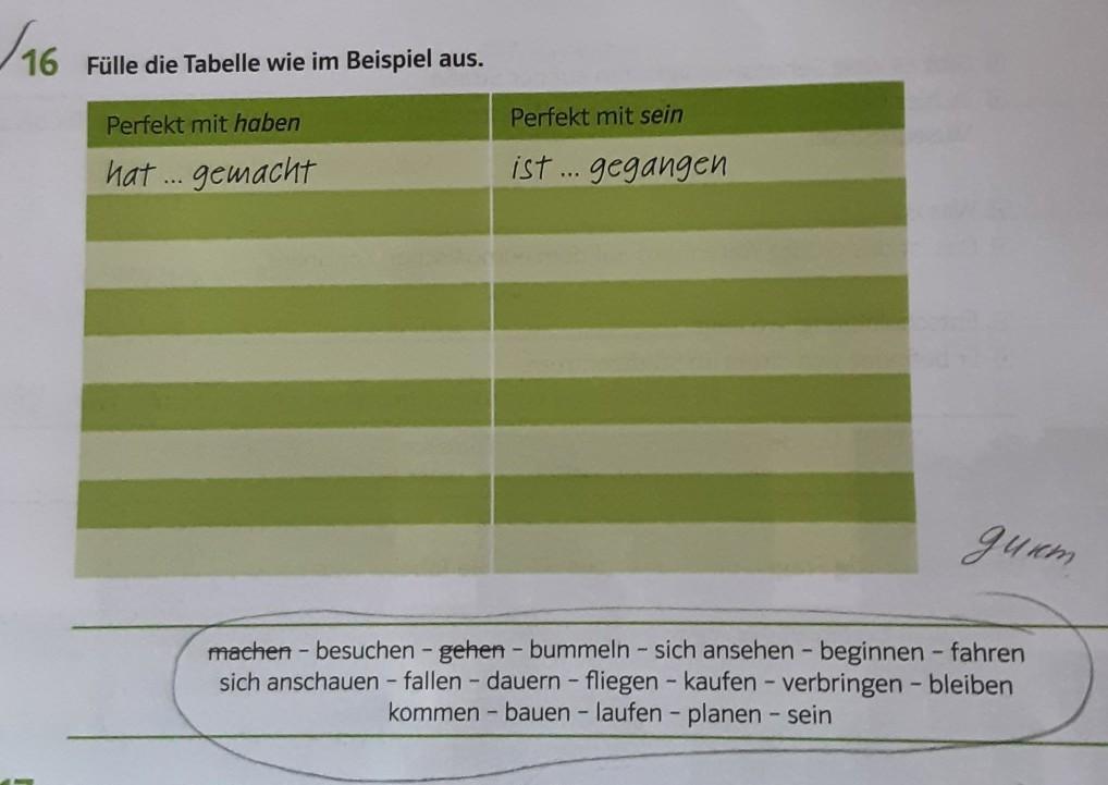 ist ... gegangen, ist ... gefahren, ist gefallen,