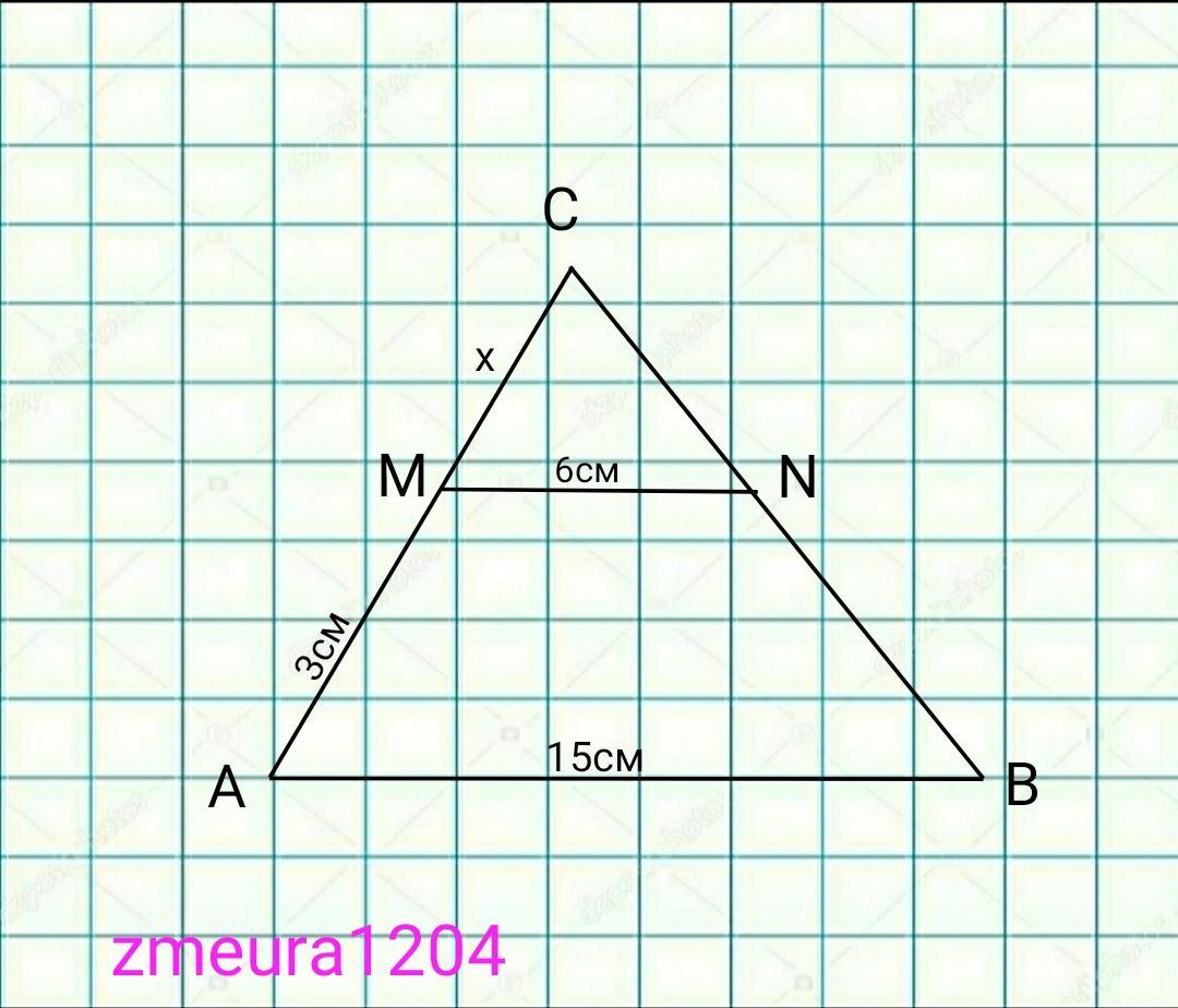 Помогите пожалуйста. Прямая, параллельна стороне AB треугольника ABC, пересекает стороны СА и CB этого треугольника в точках M и N соответственно. AB=15см, MN=6см, AM=3см. Найдите длину стороны AC.