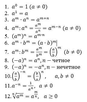 Фотография (на ней показаны основные свойства степеней).